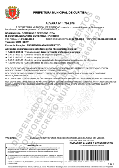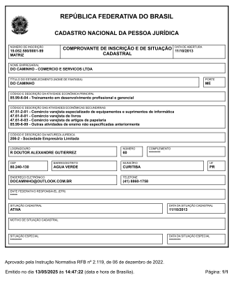 CNPJ - Do Caminho - Comércio e Serviços Ltda