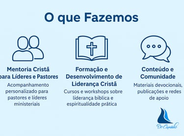 Criamos e divulgamos conteúdos bíblicos e devocionais que alimentam a alma e fortalecem o espírito. Nosso compromisso é cuidar de quem cuida — com textos, vídeos e reflexões que inspiram líderes a permanecerem firmes em sua jornada.